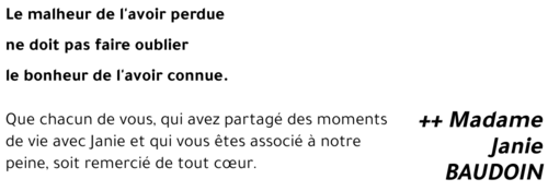 Nous vous présentons nos plus sincères condoléances pour le décès de notre cousine