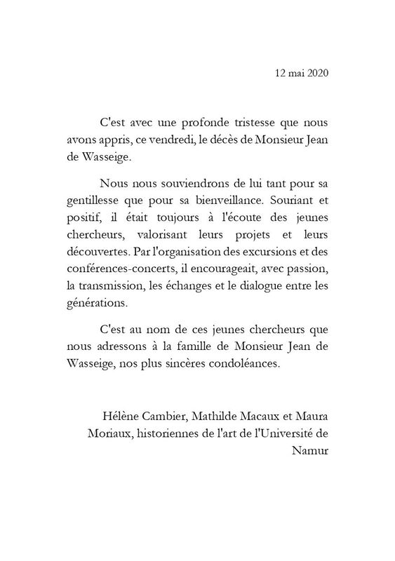 Jean de Wasseige laisse à ceux qui l'ont connu un souvenir de bienveillance, d'attention à tous, mais aussi de rigueur et de travail, expliquant la compétence qui était la sienne.