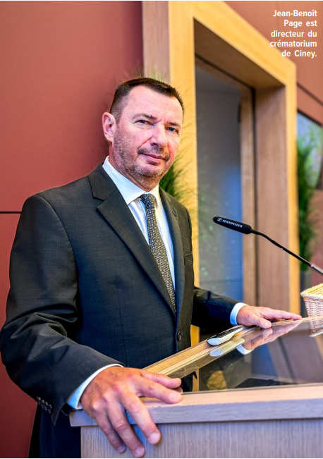 « Maître de cérémonie dans un crématorium ? Vraiment ? C’est bizarre quand même. » Il fait partie de ces métiers particuliers, souvent incompris, qui suscitent des réactions étonnées. 12 ans maintenant que Jean-Benoît Page est maître de cérémonie au crématorium de Ciney. « J’ai postulé sans en parler à personne. Et à ma grande surprise, j’ai trouvé ça formidable ! » L’ESSENTIEL, C’EST L’HUMAIN « À 50 ans, historien de formation et après une carrière dans l’enseignement et l’édition, j’ai changé complètement de métier et je suis devenu maître de cérémonie ici. Je partais totalement dans l’inconnu, il faut le dire. Il n’y a pas d’école, j’ai appris sur le tas. Mais c’est un métier que l’on porte en soi, ou pas du tout. Il y a des techniques, des façons de travailler, bien sûr, mais l’essentiel, c’est l’humain. » Accueillir, écouter, rassurer : trois verbes qui rythment ses journées. Chaque famille est unique, chaque cérémonie aussi, dit-il. « Si je fais dix cérémonies dans une journée, aucune ne se ressemble. Il n’y a pas de copiercoller possible », précise-t-il avec passion. Et c’est là toute la difficulté de la tâche. Derrière leur apparente sérénité, il y a pourtant une immense pression. « Se retrouver seul devant une assemblée en deuil, ce n’est pas anodin. On fait face à des gens qui ne sont pas forcément venus de leur plein gré, qui sont parfois brisés par la douleur, par[1]fois révoltés ou simplement perdus face à l’inconnu. » La responsabilité est immense, souligne-t-il. « Le plus grand danger serait de devenir un automate, de répéter mécaniquement les mêmes textes. Les familles attendent de nous une écoute, une attention particulière. On doit leur montrer qu’on est là, pour eux, à ce moment précis.