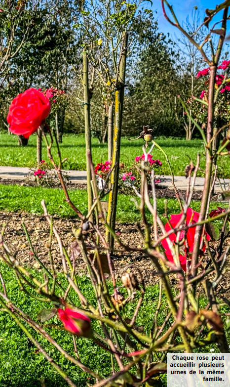 Le choix de l’inhumation des urnes sous les rosiers est particulièrement prisé, dit-il. « Chaque rosier peut accueillir plusieurs urnes, créant ainsi une sorte de sépulture familiale, » précise Jean-Benoît. Comme dans les cimetières traditionnels, les familles peuvent acheter une concession pour dix, vingt ou trente ans, renouvelable. Une plaque en bronze nominative l’accompagne. « C’est un peu comme dans un cimetière, mais au lieu d’un caveau, vous avez un rosier fleuri, » ajoute-t-il. Un cadre bucolique qui, selon le directeur, séduit de plus en plus. D’autres préfèrent l’inhumation sous les arbres, qui deviennent alors une sorte de sépulture familiale, où peuvent être déposées 8 à 10 urnes.