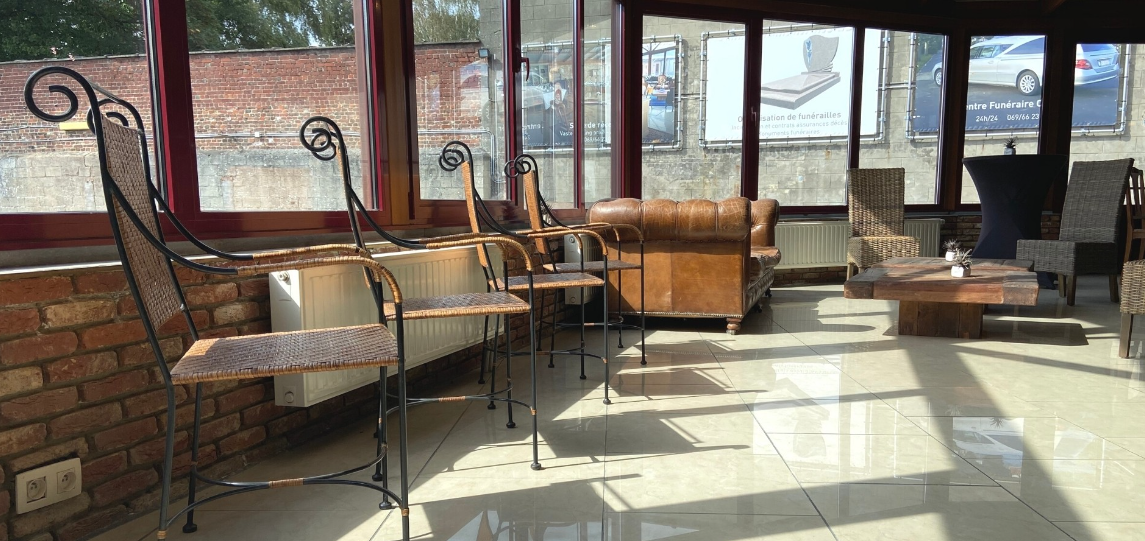 Notre centre funéraire situé rue du Bois Blanc 4 à 7900 Leuze-en-Hainaut dispose de cinqs grands salons funéraires récemment rénovés, une grande salle de réception et un magasin de fleurs artificielles, de plaques commémoratives, d’urnes cinéraires, d’accessoires funéraires ,etc.