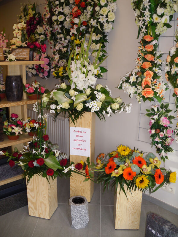 Etienne Kimplaire assure la création des gerbes mortuaires en fleurs naturelles et en soie selon vos desideratas et votre budget.