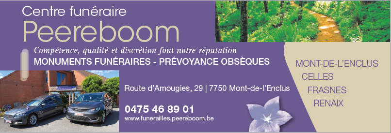 Depuis 1915, le nom de Peereboom est associé aux défunts, notre maison se charge des préparations et des funérailles de vos défunts.Après Valère qui débuta dans ce service aux familles, ce fût Albert qui était menuisier repris le flambeau de cette activité, après le décès de celui-ci et après avoir terminé les travaux au funérarium N°1 en 1992 ce fut à moi Guy de relever le défi et de diversifier les services....